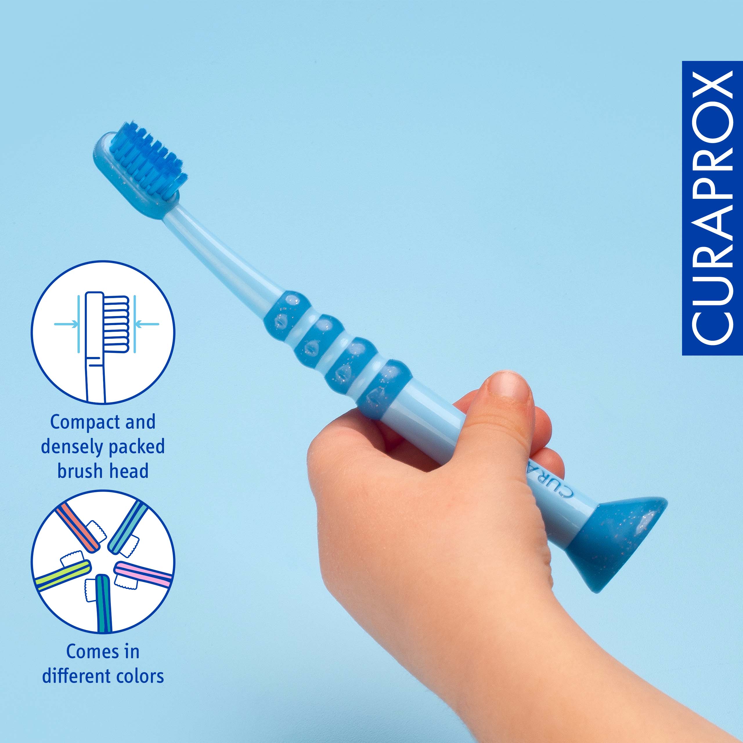 Curaprox baby toothbrush ultra soft is developed for children aged 0 to 4 years, supporting early oral care with a focus on safety and comfort. Equipped with 4,260 ultra-fine Curen® filaments (0.09 mm), the compact brush head ensures gentle yet effective plaque removal from primary teeth.