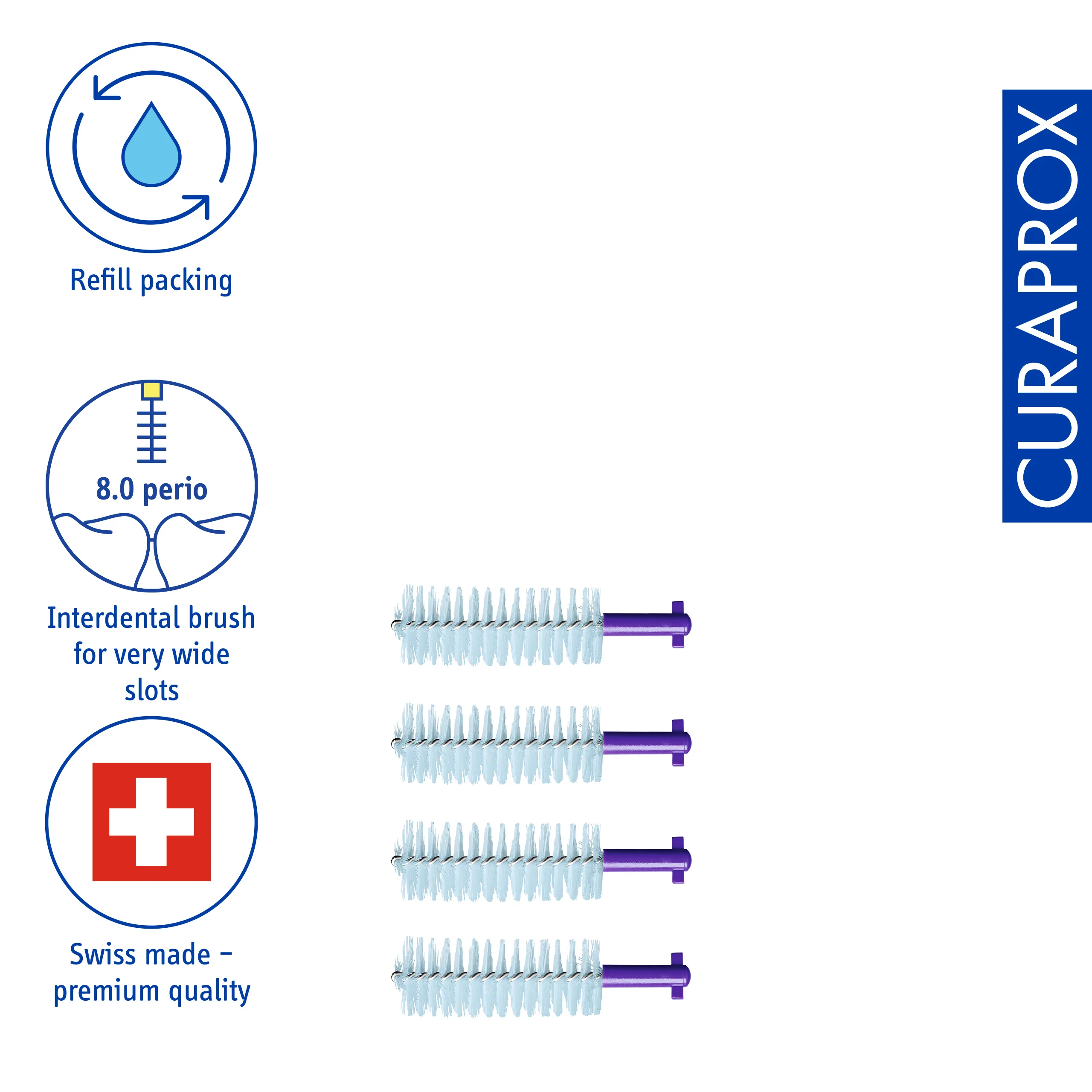 The finest bristles, size 408 refill for larger spaces between the teeth - stock-up your interdental brushes in a sustainable way. The CPS perio interdental brush – recommended for larger interdental spaces. Extremely effective in combating stubborn plaque… without causing pain.